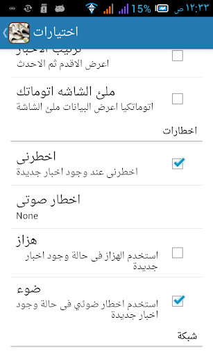 - اخيار تفعيل التنبيه للاخبار الجديدة مع اختيار نغمة او اهتزاز
