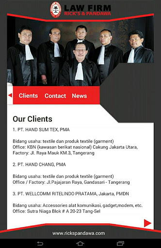 Mendampingi Clients / Mitra dalam melakukan berbagai aktifitas bisnisnya dan pendampingan dalam hal berperkara.