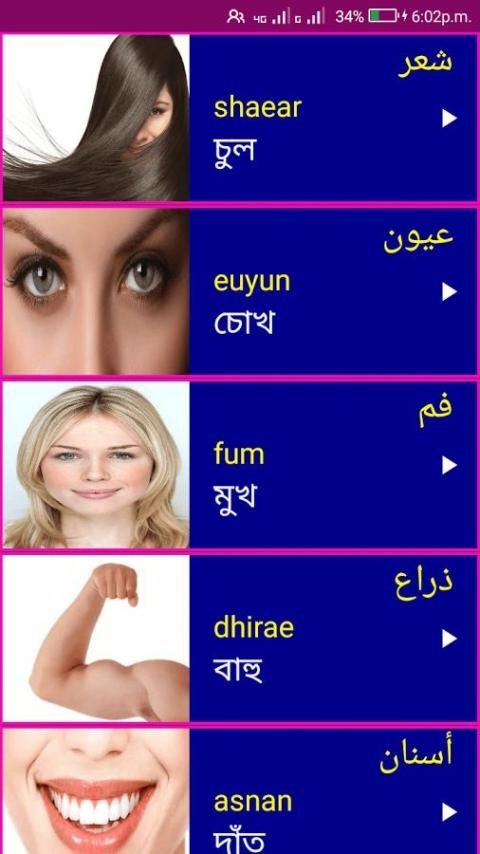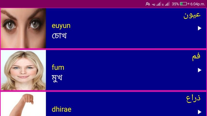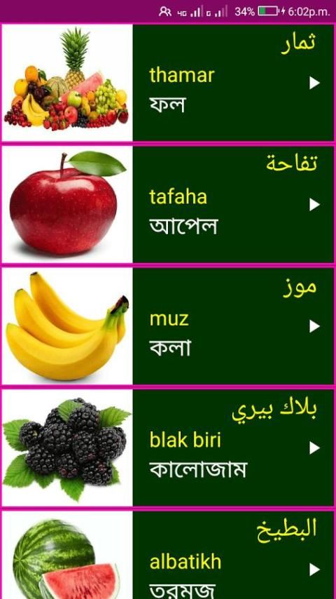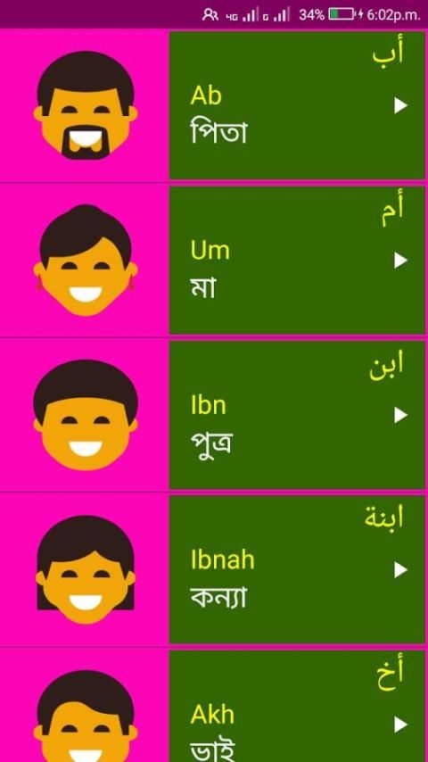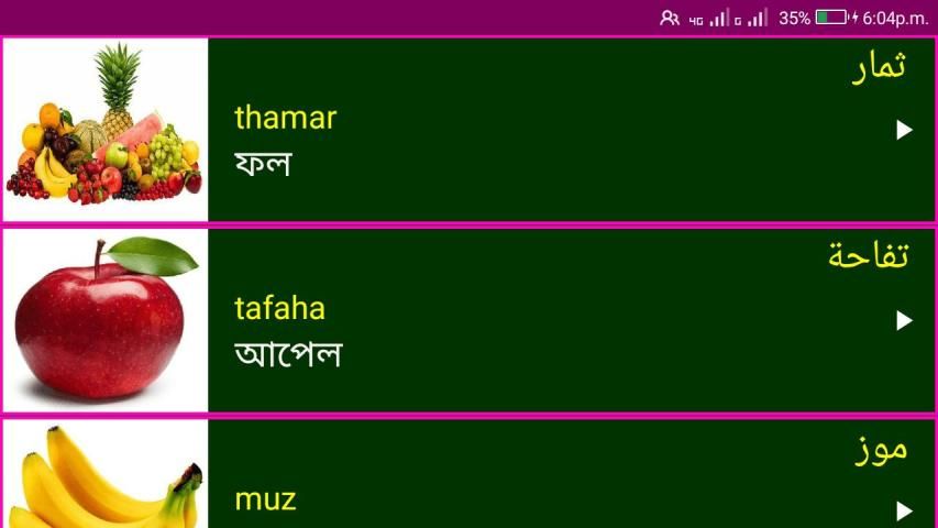4. يتم توفير الصور واضحة واضح الصوت لكل كلمة عربية. كل كلمة عربية له معنى في البنغالية.