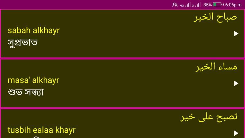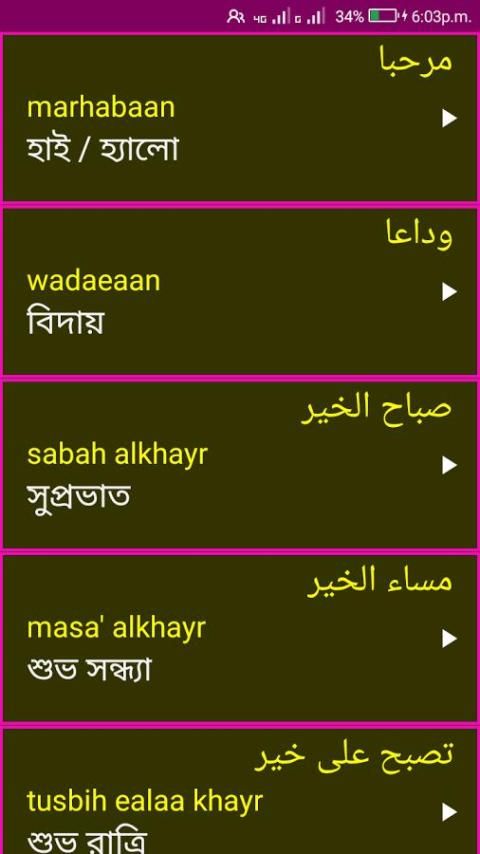 6. يمكنك تعلم اللغة العربية في البنغالية حتى من دون الصافي اتصال نشط، وتعلم المحكية العربية من التطبيق البنغالية يعمل حاليا أيضا.