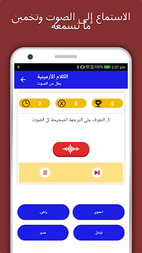 حاليا الأرمينية التطبيق التعلم لديها 2،135 الكلمات مع 55 فئات. أنه يحتوي على النطق والصور وصوتيات الكلمات لسهولة التعلم. التبديل لغة قاعدة، حفظ الدروس في EduBank℠، اللعب الصوتي،Potpourri والاحتفاظ الألعاب هي السمات الرئيسية للتحدث التطبيق الأرميني.
