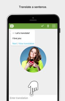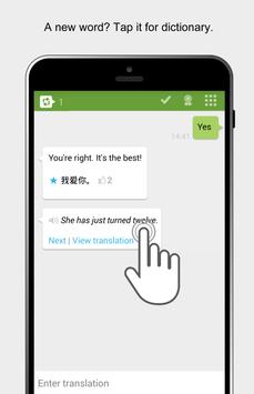 If you don't know how to translate a sentence, you may choose to view the translation by the community. You can also skip a sentence if it's really difficult. Well, if you meet any new English words in a sentence, you can use the built-in bilingual English dictionary to look up its meaning and then start your translation. The process helps you learn English words and expand your English vocabulary effectively.