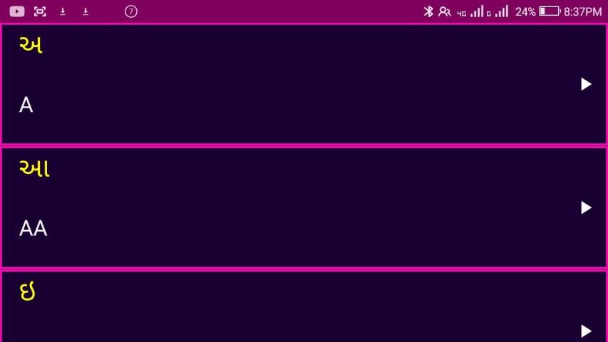 تعلم الحروف الهجائية الغوجاراتية والأرقام التطبيق يأتي مع تصميم beutiful والتطبيق سهل الاستخدام. وتقدم تسجيلات صوتية واضحة من قبل شخص يتحدث الأصلي الغوجاراتية لكل الغوجاراتية الأبجدية وعدد الغوجاراتية. هذا التطبيق يعمل حاليا أيضا.