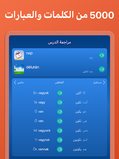 مع Mondly يمكنك تعلم الجمل والعبارات الهنغارية مجانا مع دروس اللغة الهنغارية اليومية على الانترنت. هذا التطبيق هو الطريقة الفعالة للمبتدئين لدراسة الأفعال، والنطق وكيفية التكلم كأنك ابن من ابناء البلد مع الممارسة اليومية.