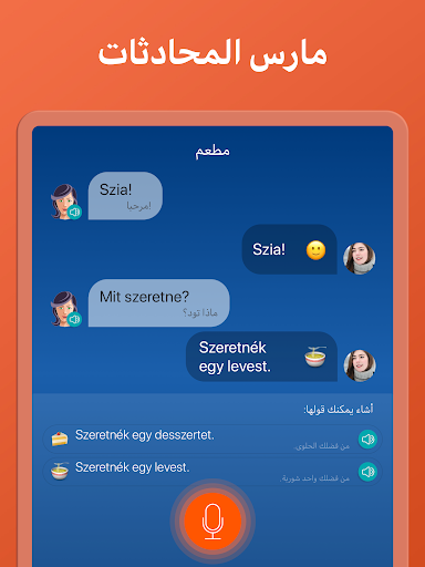 • Mondly يعرف تماما كيفية الاستماع إلى الكلمات و العبارات الهنغارية. لن تحصل على تقييم إيجابي إلا إذا كنت تتحدث الهنغارية بشكل واضح و صحيح. سيؤدي ذلك إلى تحسين النطق الخاص بك.