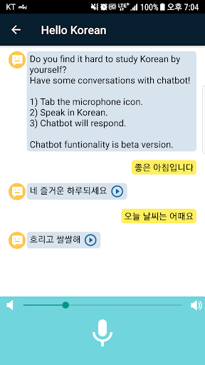 يمكنك التحدث مع chatbot بواسطة الكورية.