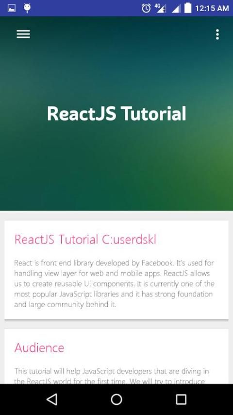 يرصد هذا التطبيق أيضا بطريقة لمساعدة جميع الطلاب الذين يرغبون في الدراسة ReactJS على الذهاب مع جيب الحجم كتاب ReactJS في هاتفك الذكي.