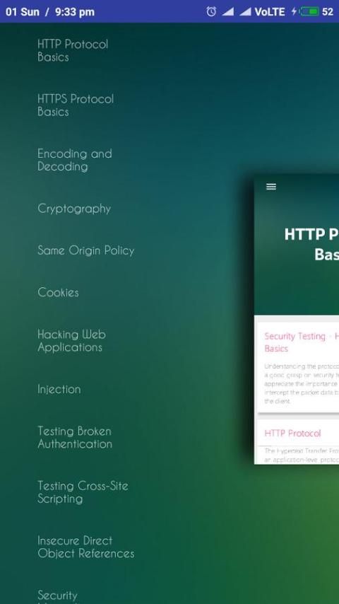 يوفر هذا التطبيق ممتازة البرنامج التعليمي على أسس اختبار اختراق الموقع وكذلك مع مفاهيم الاختراق اختبار الأساسية الموقع.