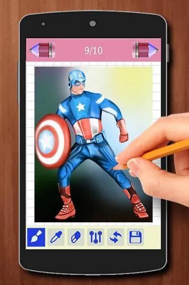 هذه التطبيقات هي خطوة خطوة تعليمات التي سوف يعلمك كيفية رسم أحرف المنتقمون. مثل مدرس فن الشخصية، وسوف يعلمك كيفية رسم العشرات من كائنات مختلفة خطوة بخطوة، وخلق تصميم مدهش، يمكنك اختيار الحرف الذي تريد والبدء في استدراجه.