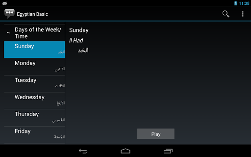 باستخدام هذا التطبيق ، يمكنك تحديد عبارة إنجليزية وعرض ترجمتها وكيفية نطقها في المصرية. 2010 CIO/G6 & quot ؛ تطبيقات للجيش & quot ؛ المنافسة ، وتستند إلى الوحدات النمطية المتاحة للجمهور عبر الإنترنت من معهد لغة الدفاع الأمريكي. في حين أن موضوع هذا التطبيق يتعلق بشكل أساسي بالمواضيع العسكرية ، فإن التطبيق مفيد على نطاق واسع مع المحتوى المتعلق بمجموعة من الموضوعات.