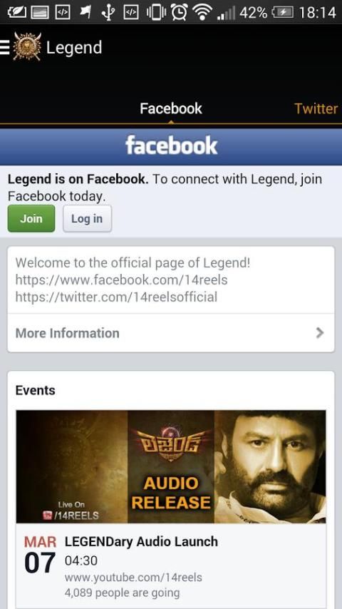أسطورة هو فيلم التيلجو القادم للمخرج Boyapati Srinu والتي تنتجها رام Achanta، Gopichand Achanta وأنيل Sunkara تحت 14 بكرات الترفيه وساي Korrapati سيتم عرض الفيلم على Vaarahi Chalana Chitram. بطولة Nandamuri بالاكريشنا، راديكا أبته وسونال شوهان في الأدوار القيادية وJagapathi بابو تلعب دورا سلبيا في هذا الفيلم film.The هي المرة الثانية Nandamuri بالاكريشنا وBoyapati Srinu معا بعد كتلة المغفل سمحا. سري ديفي براساد يؤلف الموسيقى لأول مرة مع بالاكريشنا والمرة الثالثة كفريق واحد مع Boyapati Srinu بعد بادرا وTulasi. رام براساد يعالج السينما.