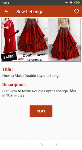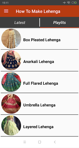 App contains different patterns of Latest Lehenga Cutting And Stitching Videos.
