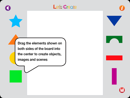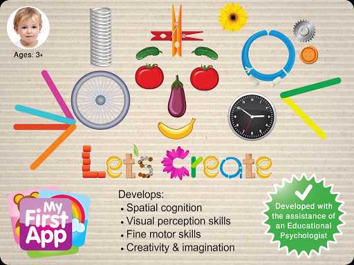 Let’s create is a kids game that helps develop creativity, spatial cognition, visual perception skills, fine motor skills, hand eye coordination, imagination, and executive functions such as planning and organizing. It is designed for children aged 3 .