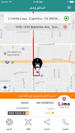 تحتاج لتوصيلة؟ استخدام ليمو للحصول على مشوار بأسعار معقولة في غضون دقائق. بدلا من اخذ سيارة أجرة أو انتظار طويل، فقط اطلب السيارة بضغطة زر واحدة، والحصول على اقرب سائق الذي سوف يأخذك إلى وجهتك على الفور. التمتع بالمشوار والترحيب بك، وبأسعار معقولة.