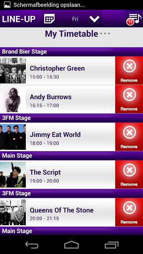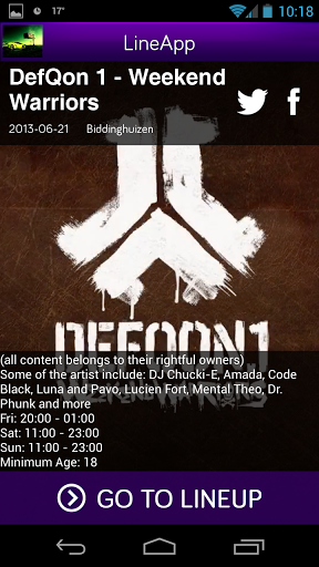 LineApp is the new essential app for everyone that loves to attend the best festivals. Browse through a list of the best and biggest parties around the world and make the most out of your day by creating your unique Line-Up schedule out of all the acts they have to offer.Browse and DiscoverAll the big festivals in one app and the option to search for your favorites by name, city or genre. find new parties you won't want to miss and favorite them to be kept up to date. Create an account and let us know what you love, so we can deliver the information you are looking for.You can help us feature the best parties by submitting them to us, and they will be featured in the app!Don't miss outWhen the line-ups for festivals become available, they will be added into the app. You can create your own schedule, so you don't miss out on any performance you want to enjoy!10 minutes before the performance the app will notify you that it's time to get to the right stage. These personal schedules are created in minutes and will warn you when performances will overlap. Last, but not least, this all works offline – no need to fret if your connection is lost amidst 50,000 other fans!This app is just the beginning of the ultimate festival companion. We would love to recieve your feedback on how we can make this app better for you. Please e-mail us with your ideas, and we will take it into consideration when we update LineApp!