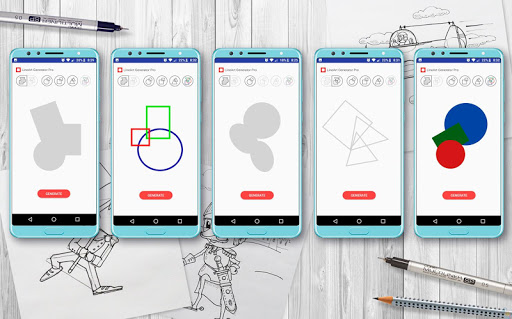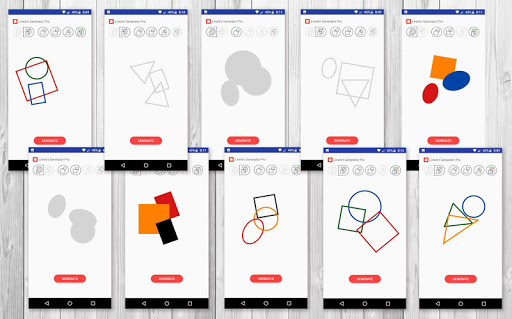 The application generates a complex shape from several simple ones. Your task is to see the associations and draw the subject that came to your mind.