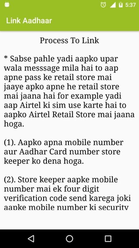 - يوفر هذا التطبيق معلومات كاملة حول كيفية ربط adhaar إلى بطاقة سيم وماذا يكون الرسم لهذه العملية؟