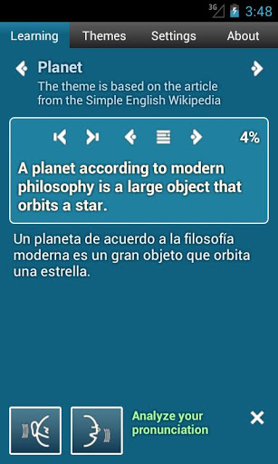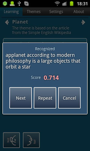 It uses an advanced learning technique where short language patterns are read, understood, and pronounced in sequence. The application then analyzes your pronunciation, telling you how well you have done.