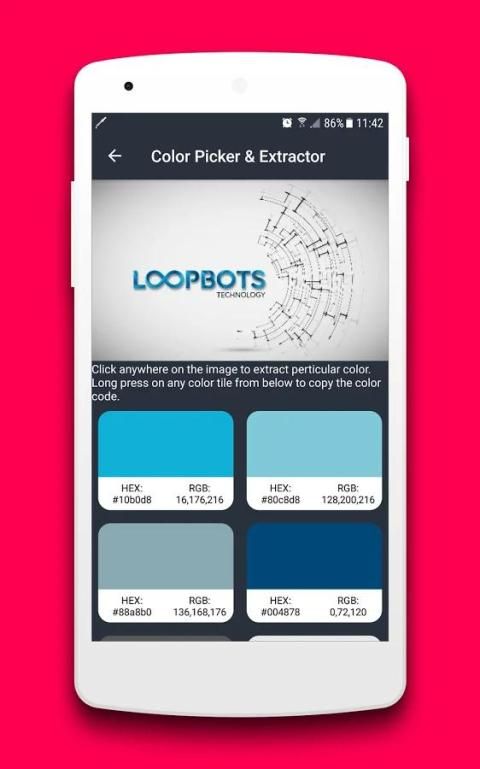 ▶ This feature will extract all the majority colors but if you want to extract some specific color from specific part then we have solution for this too. Just tap on the image anywhere and it will show you the color code of that portion.
