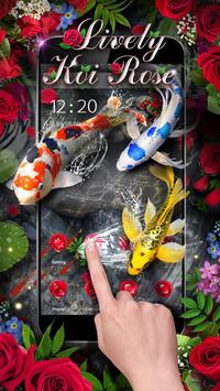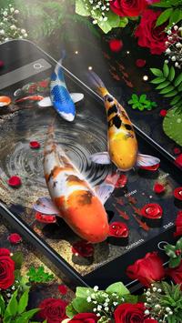 ⭐The vibrant koi pond scenery theme launcher shows the lively wiggle koi fishes swim around in the calm fish pond, with superlative romantic red roses as background.