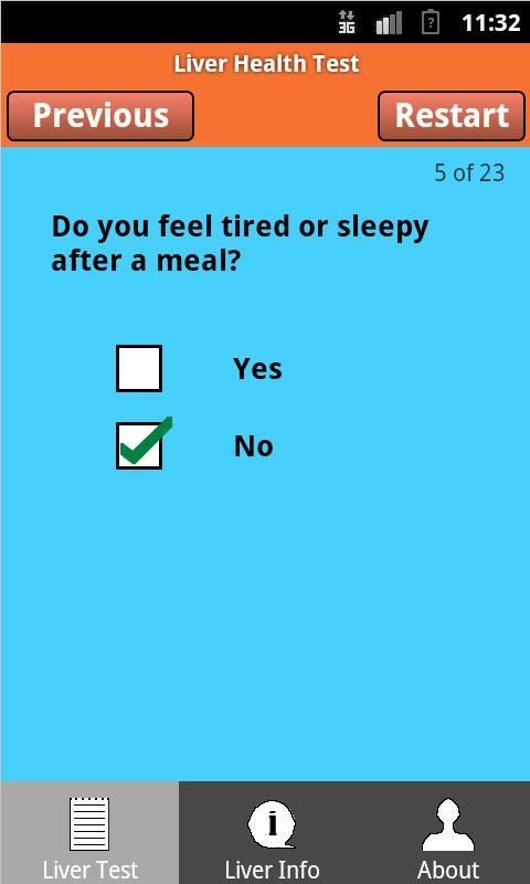 الكبد الصحة اختبار التطبيق لا تتطلب منك تزويدها بأية معلومات الاتصال الشخصية وأنها سريعة وسهلة الاستخدام. تحقق صحة الكبد الخاص بك اليوم.