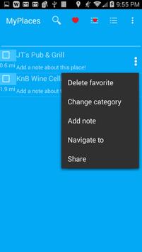 You can view these places in a map view or a list view and can quickly navigate to this place, save it as a favorite place, make notes about this favorite place, or even be reminded when you are close by.