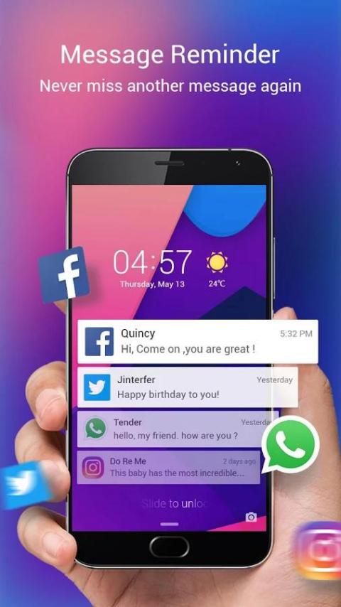 > شاشة القفل يمكن أيضا عرض الرسائل من التطبيقات مثل الفيسبوك وتويتر، WeChat، ال WhatsApp، الخ
