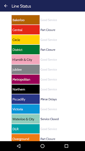 يتضمن هذا التطبيق جميع خطوط أنابيب لندن / تحت الأرض، DLR، London جارت، TFL Rail and Trams.فهو يجمع بين الخريطة التفاعلية دون اتصال مع مخطط رحلة ومراقبة الحالة الحية.