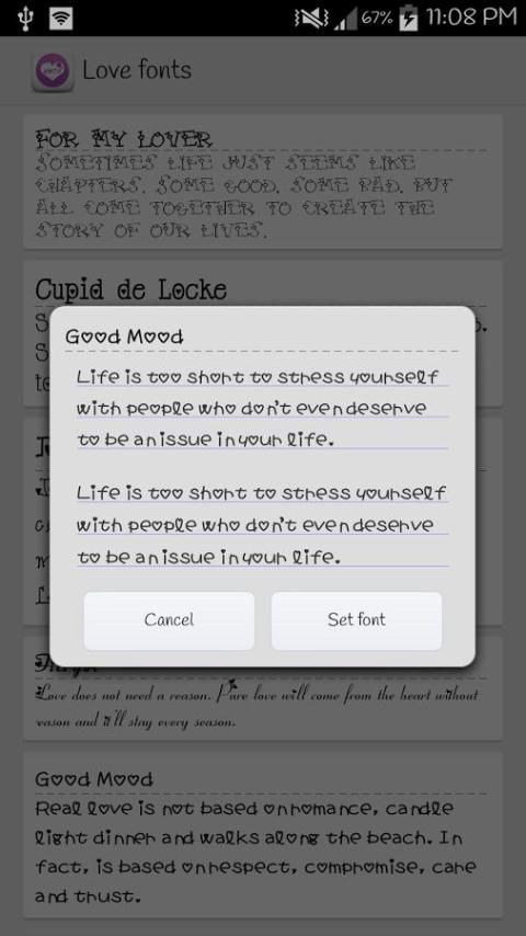هذا الخط يحتوي على حزمة الخطوط الحب المجانية لأجهزة سامسونج جالاكسي مصممة لتكون متوافقة مع برنامج FlipFont® مادة منضدة التصوير شركة '