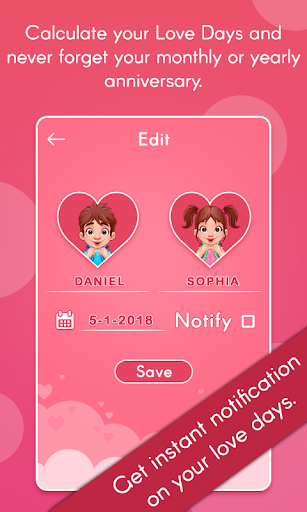 منذ متى كانت togather؟ عد أيام حبك بأسلوب فريد جدا عن طريق إنشاء صورة الحب. أضف تاريخ علاقة حبك، أضف صورتك وصورة صديقتك، كما تختار من خلفيات موضوع الحب المصممة خصيصا. احصل على Love Notfication كما تريد - Dailt، الذكرى الأسبوعية، الذكرى الشهرية أو الذكرى السنوية السنوية. لا تنسى أبدا ذكرى حبك. احتفل بعيد الحب الذكرى دائما. مشاركة حالة حبك مع هذه العدادات الحب أيام. اكتب اسم Girriends الخاص بك في نمط خط فريد لإنشاء لمسة شخصية.