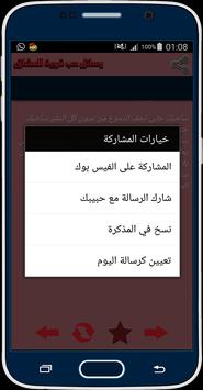 التتطبيق يعمل بدون انترنت و يشمل أجمل و أروع الرسائل الغرامية التي يمكن أن ترسلها لمن تحب ، مع واجهات سهلة التصفح و رائعة و ألوان جدابة ستلائم راحتك