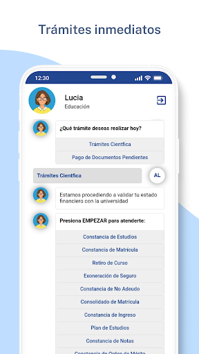 Lucia هي مساعدنا الافتراضي للطلاب والمتقدمين الذين سيساعدونك في تنفيذ أنواع مختلفة من الإجراءات (إثبات الدراسات ، والتسجيل ، والشهادات المتنوعة ، ودفع المعاشات التقاعدية ، والطلبات ، والتأمين ، وما إلى ذلك) ودفع المناصب المعلقة.