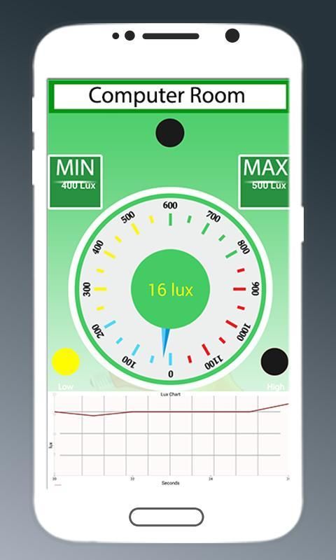 Note: Be aware that the accuracy of the light sensor vary between different devices and values shown in this application are indicative.