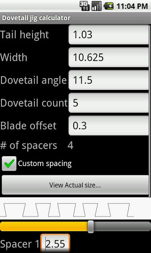 تعتمد آلة حاسبة Jig Dovetail على طريقة لقطع الاشتراكات على الشريط المنشار مع الفواصل.رأيت التقنية في شريط DVD المنشار ولكن لم تتمكن من العثور على مثال جيد على YouTube.مع بعض التجريب، أعتقد أن الآلة الحاسبة ستعمل مع النهج الأخرى التي تستخدم الفواصل.