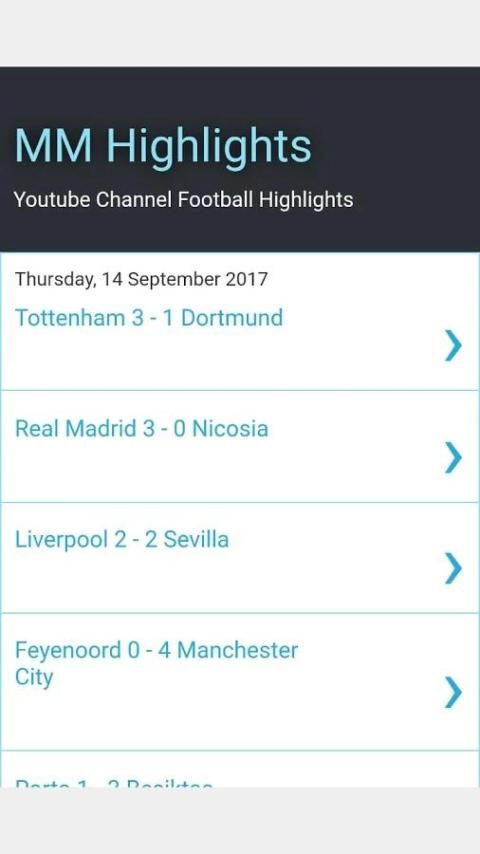 هناك أخبار لك لمعرفة اكثر عن افضل تطبيقات اندرويد 30,000+ مستحدمين يحملون MM Football Highlights احدث الاصدار مجانا كل أسبوع في لو لا يعجبك الاصدار القديم فيمكنك تقوم بتحديثه في اي الوقت..9Apps هذه التطبيق الحلوووه تصدر في 2017-09-16 يمكنك تجد اكثر التطبيقات المطلقة في 9Apps..