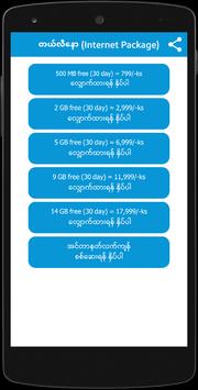 အင္တာနက္ပက္ေက့ခ်္ေတြကို ဘယ္လို၀ယ္ယူရမလဲဆိုတာ ေအာ္ပေရတာ တစ္ခုခ်င္းစီအလိုက္ Internet Package, Night Plan, Social Pack, စတာေတြကို ေစ်းႏႈန္းေလးေတြနဲ႕ တြဲၿပီး တင္ေပးထားပါတယ္။