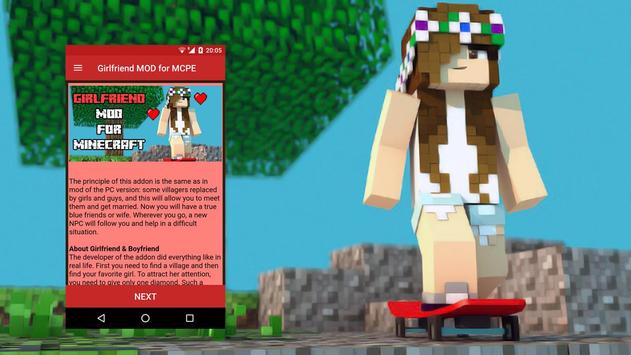 Find your girlfriend for Minecraft PE with the best MOD. Do not be a forever alone and create your girlfriend to keep you company, you can go for a walk with her in the virtual world of Minecraft.
