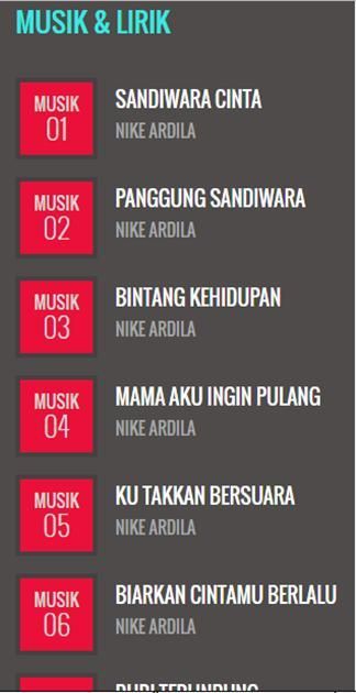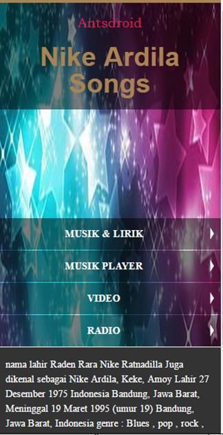 ويوفر هذا التطبيق مشغل الموسيقى أغنية "نايكي ارديلا وكلمات" والفيديو والراديو.