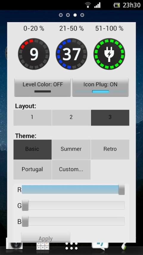 3 تخطيطات >> لتخصيص القطعة مستوى البطارية الخاصة بك