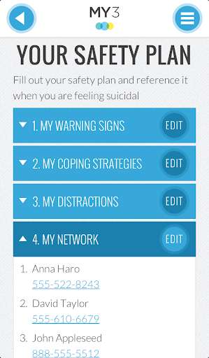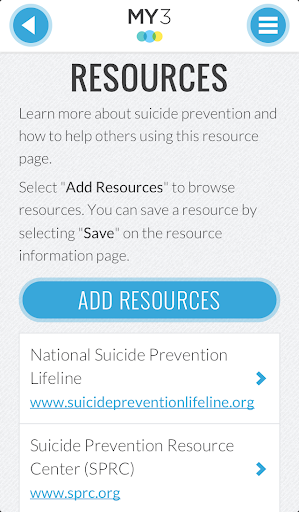 Stay connected to your network when you are in a time of crisis with MY3. With MY3, you define your network, and your plan to stay safe. With MY3 you can be prepared to help yourself and reach out to others when you are feeling suicidal.