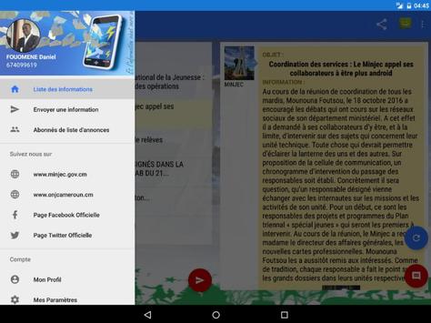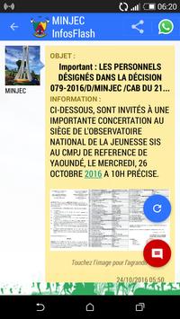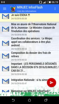 The Android official app "MINJEC InfosFlash 'main objective to allow Young and officials to find the latest information from the Ministry of Youth and Civic Education in real time, through the media. Internet (4G / 3G / 2G / EDGE or Wi-Fi, if available), GSM (SMS).