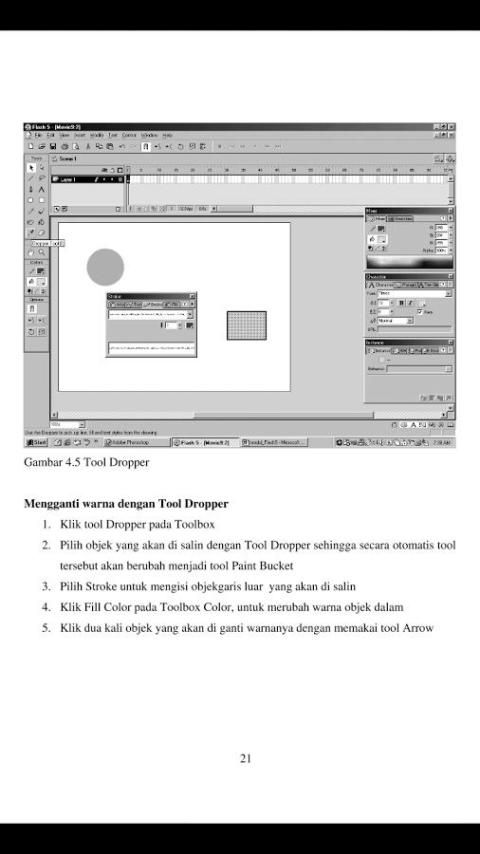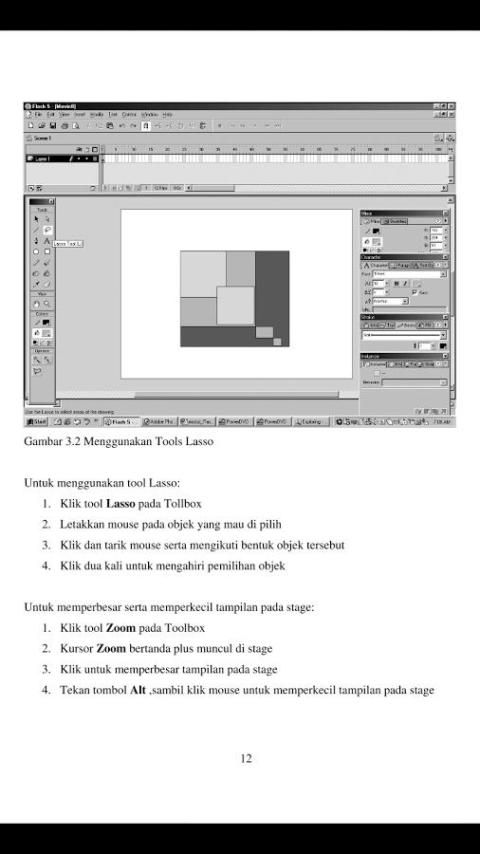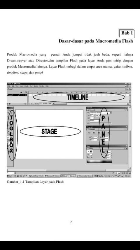 ماكروميديا المنتج الذي شاهدته على الإنترنت لا يختلف كثيرا، تماما كما دريمويفر أو مدير، وعرض فلاش على الشاشة هي مشابهة مع منتجات ماكروميديا الأخرى. وتنقسم الشاشة فلاش في أربعة مجالات رئيسية، هي الأدوات، والجدول الزمني، والمسرح، ولوحة