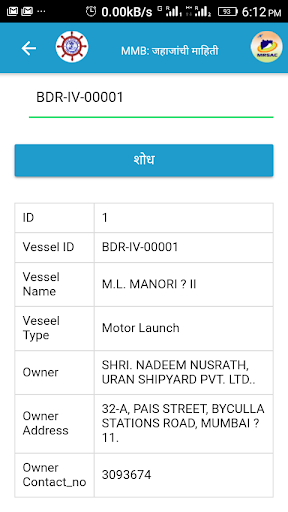 - Vessel Search : Vessel Id wise information is available