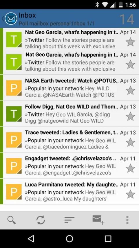 - يدير حسابات متعددة: POP و IMAP، SMTP و Microsoft Exchange، دردشات، وآر إس إس.
