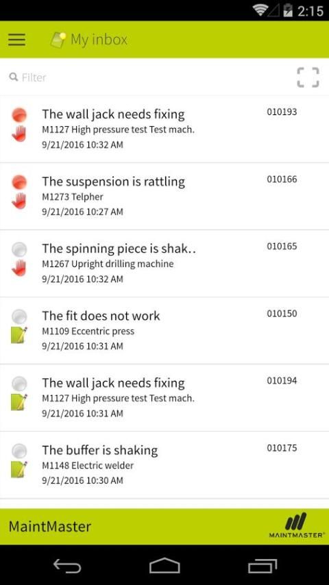 في الوقت الذي يتميز بالكفاءة، فمن الضروري مع نظام الصيانة التي يمكن التعامل مع أي حالة معينة. هذا هو السبب في وضعنا MaintMaster. نظام التحكم التي تتكيف مع احتياجاتك. وتوفر واجهة سهلة الاستخدام توجيهات واضحة ويقلل من عملية بدء التشغيل. تصبح جزءا من MaintMaster اليوم - نظام صيانة ذكي.