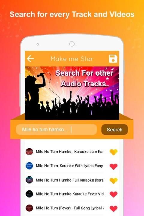 يمكنك تعاوني مع الفنانين المفضلة لديك! تاريخ الاختبارات المحمول مع تجعلني ستار، الفوز تذكرة الفضية وتحقيق حلمك! تعديل تسجيلات عالية الجودة مع مجموعة ضخمة من الآثار صوت وتبادل الغلاف مع جميع أصدقائك وكسب إعجاب! سماع صوت داخلك! الموسيقى هي الحياة، والغناء هو أن تعيش حياتك!
