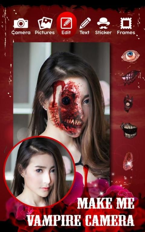 تجعلني مصاص دماء محرر الصور تشغيل لحياتكم! أحدث كاميرا غيبوبة الموالية التطبيق هو هنا ليحولك إلى مخلوق أوندد غريب! الحصول على هذه الصورة وجه محرر التطبيق نفسك ميتا وتحويل نفسك في غيبوبة في ثوان معدودة! سوف تحب هذا الوجه المغير برنامج الصور كشك رهيبة بمجرد تثبيته ونرى ما لهذا العرض! هذه الأداة التلاعب مجانية الصورة سوف تحصل على المدمنين في الثانية!