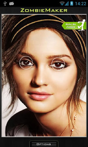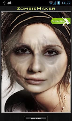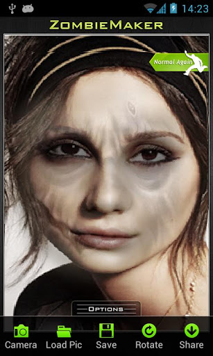 MakeMeZombie cool app, that makes real zombies of live peopleJust take a picture portrait photos are the best, put marks on it and process itThe main features are:Fast and stable photo engineSet the size of the action zoneRotate pictures Take picturesLoad picturesShare with your friends via email mms and social networks Add photos to the contact bookin order to cancel all the changes please push the undo button and wait for few seconds.Warning: the app may not be suitable for kids and overemotional persons
