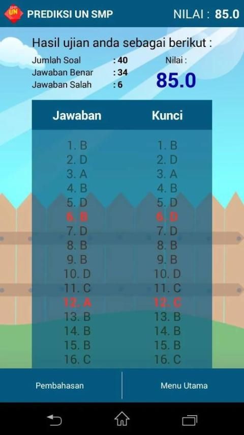 هذا التطبيق هو محاكاة تجربة لامتحان الوطني 2017 SMP / النظام التجاري المتعدد الأطراف مع نظام UNBK (القائم على الحاسوب الامتحان الوطني). يحتوي على أسئلة SMP للامم المتحدة / MTS هي الإندونيسية، الإنجليزية والرياضيات والعلوم. هناك 3 مجموعات على وشك أن العشوائية كل دورة خلع الملابس، والمواعيد النهائية المسألة، الدارمي قيمة ومفتاح الإجابة في نهاية الدورة. نأمل، من خلال تطبيق الروبوت، يمكن للطلاب أكثر ممارسة التمارين بحيث يمكن أن تعمل على مشاكل SMP للامم المتحدة / النظام التجاري المتعدد الأطراف في عام 2017 مع قيمة ممتازة!