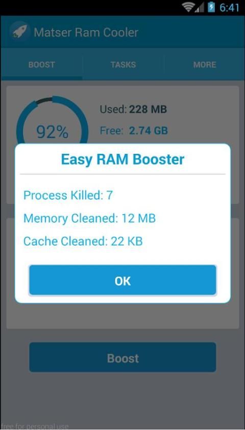 لدينا التطبيق رام الداعم يجعل هاتفك أسرع وأكثر سلاسة والحفاظ دائما بأقصى سرعة. هذا التطبيق يوفر لك واحدة الحنفية الحل زيادة. فهو يقتل كل الذاكرة الخلفية واستنزاف التطبيقات في الاستفادة من واحدة. لذلك يحسن النظام الخاص بك وأداء البطارية.